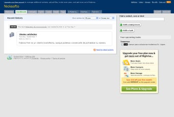 A través de la sencilla interfaz de Highrise, puedes crear perfiles o importarlos desde ficheros CSV o tarjetas vCard. También puedes moverte entre acuerdos y grupos de usuarios a través de sus pestañas, así como acceder en todo momento a tus tareas pendientes. El seguimiento de todos estos datos por el RSS de Highrise es definitivamente útil.